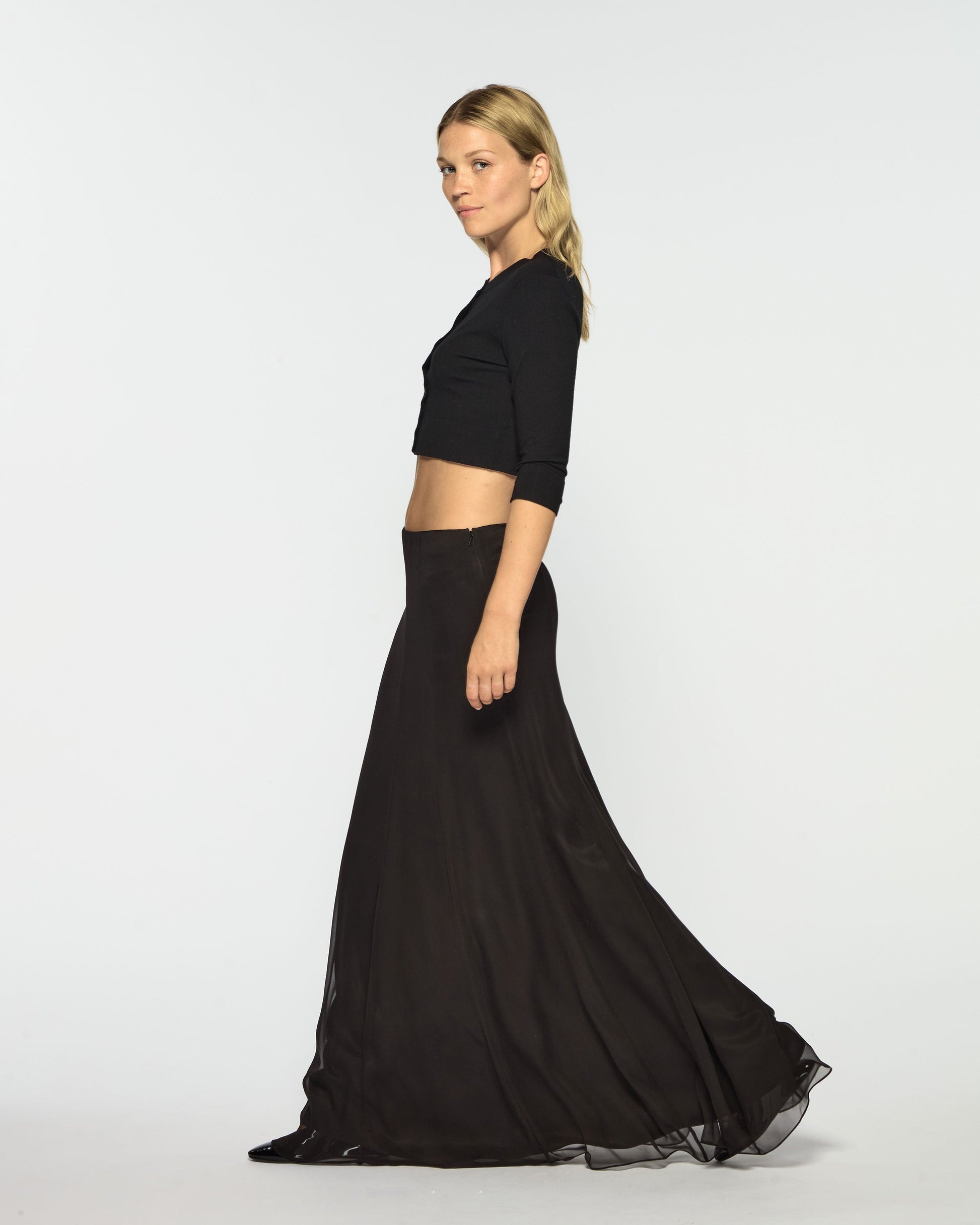 Valeria Silk Georgette Skirt – Black