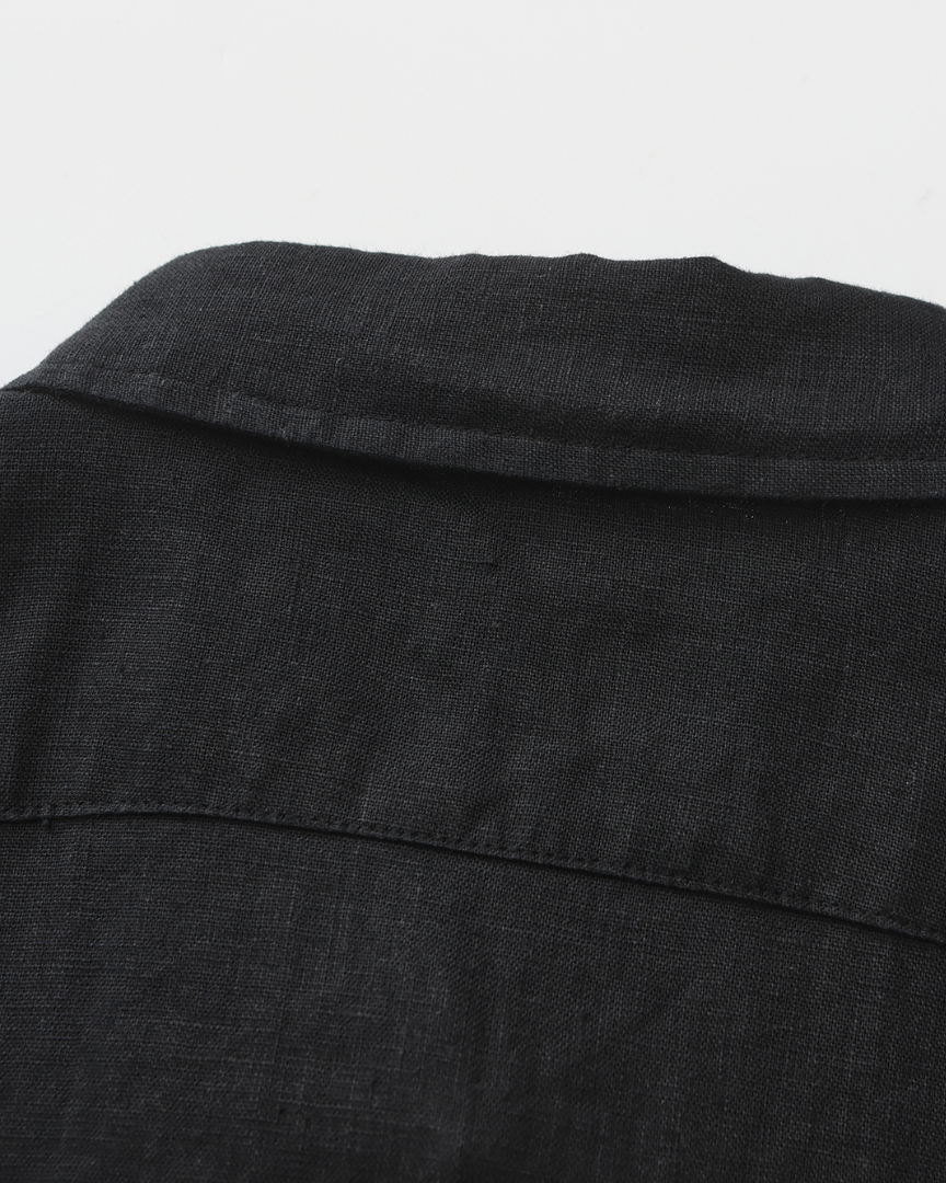 • Linen Shirt – Black: Crafted from premium 100% linen, this lightweight shirt provides exceptional breathability while maintaining a clean and sophisticated silhouette.