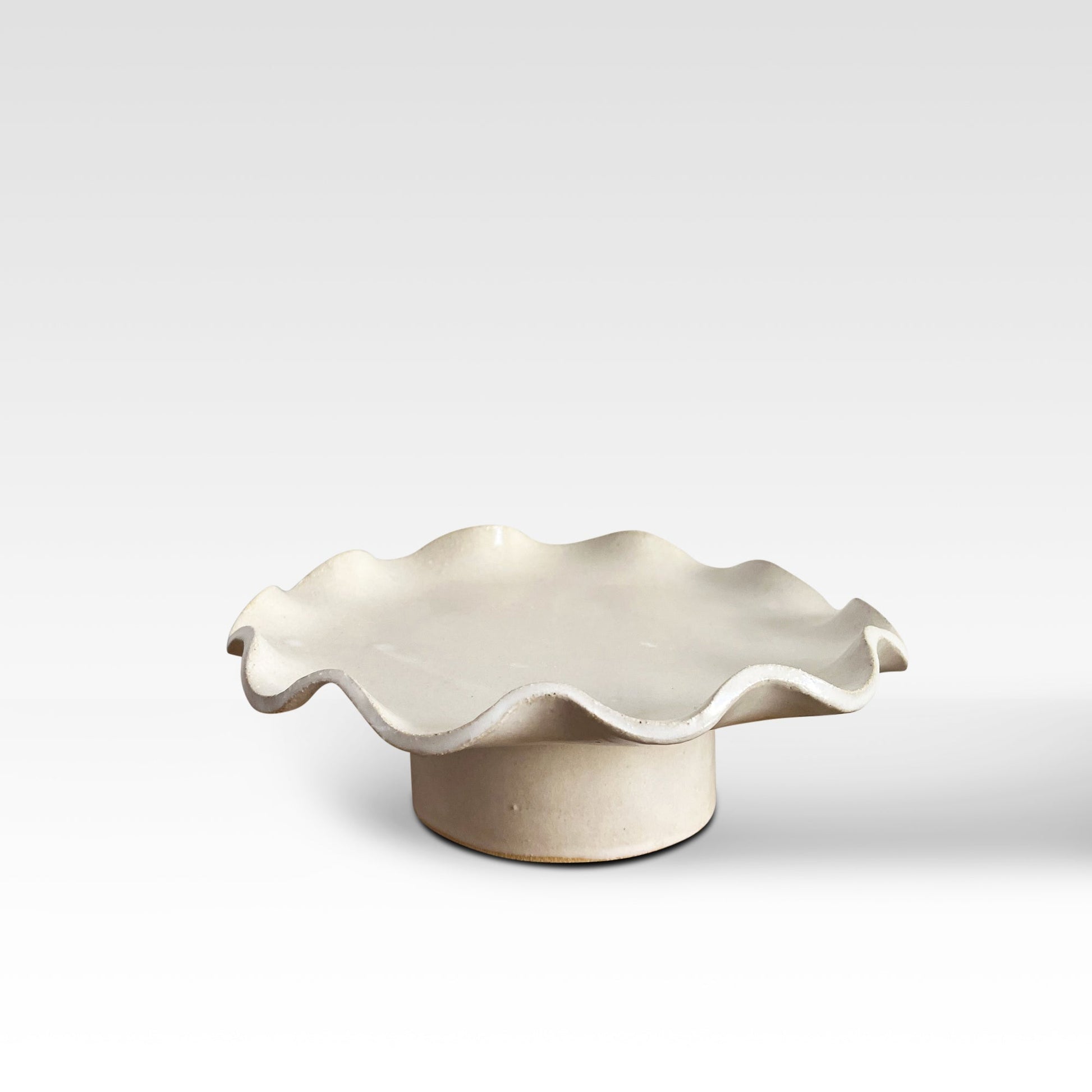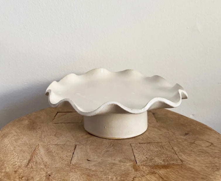 A conversation-worthy centerpiece that blends artisanal craftsmanship with a light, contemporary aesthetic. Whether used for desserts, fruit, or floral accents, the Ruffle Edge Pedestal brings warmth and sophistication to any occasion.