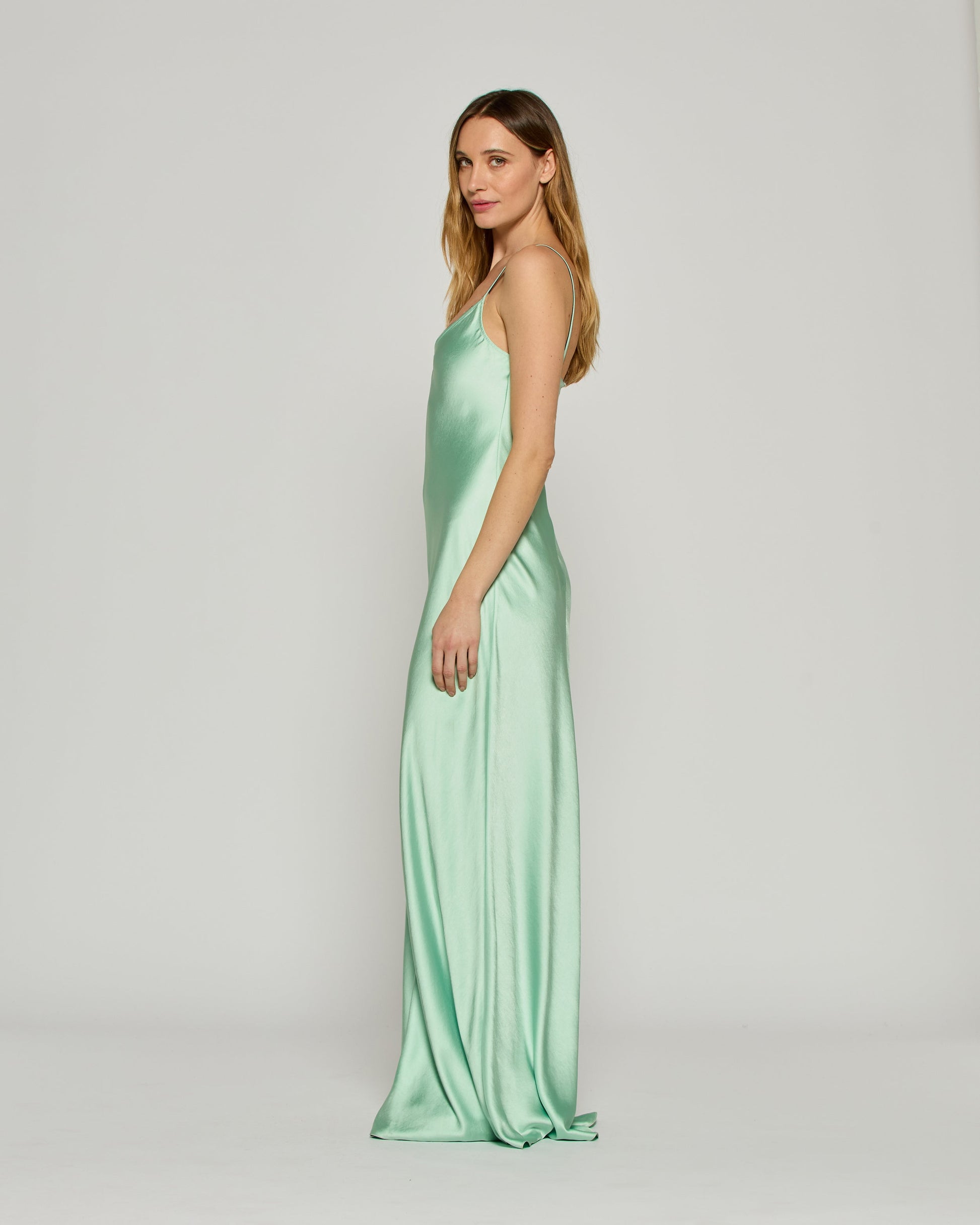 Selene Satin Slip Dress – Mint